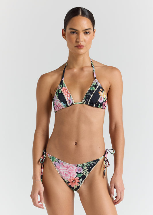 Jamaica Bralette Tri Tie Bikini Top - Black