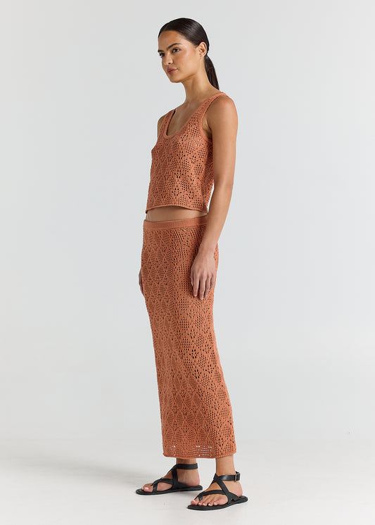 Messina Crochet Knit Maxi Skirt - Amber
