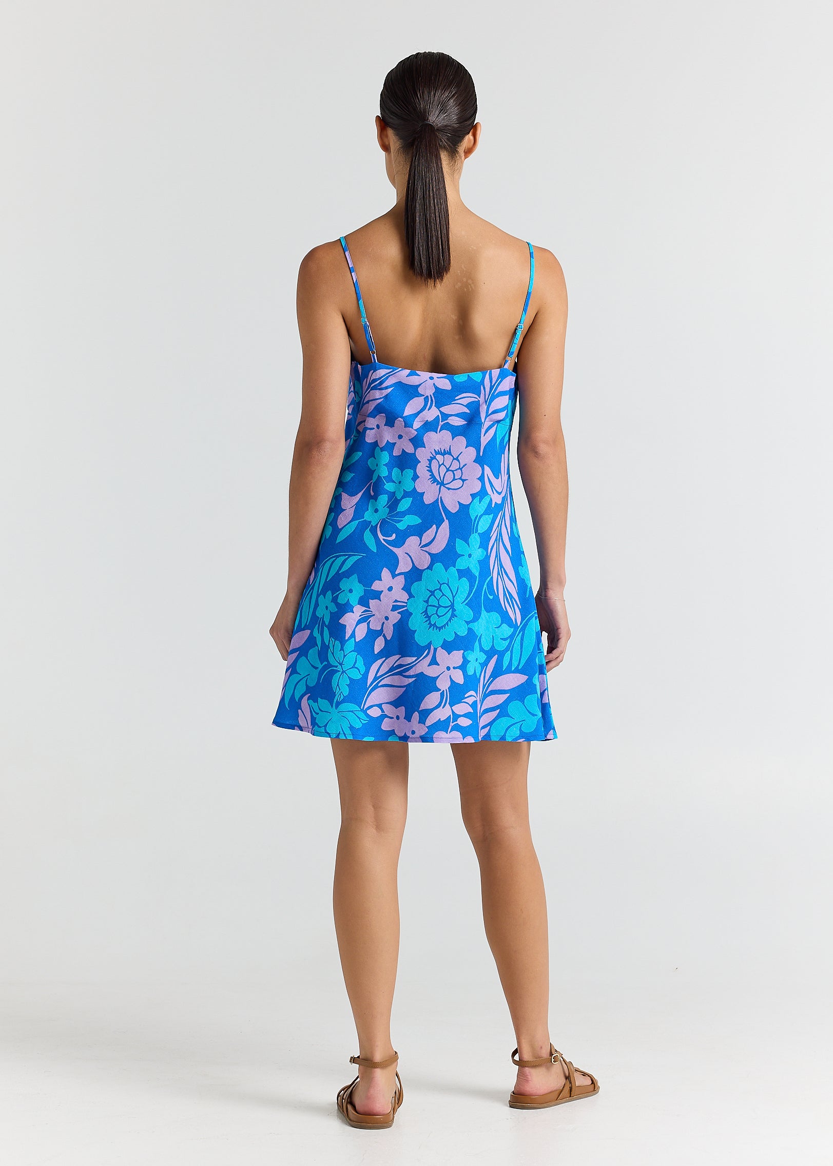 Featuring our Vanuatu print — a hand-drawn tropical in shades of ocean blue and lilac — this effortless silhouette will become your forever favourite. Designed as the ultimate summer sundress, it’s lightweight, easy to wear, and perfect for sun-soaked getaways. Whether styled over swimwear or worn on its own, this versatile piece is your go-to for warm-weather dressing.